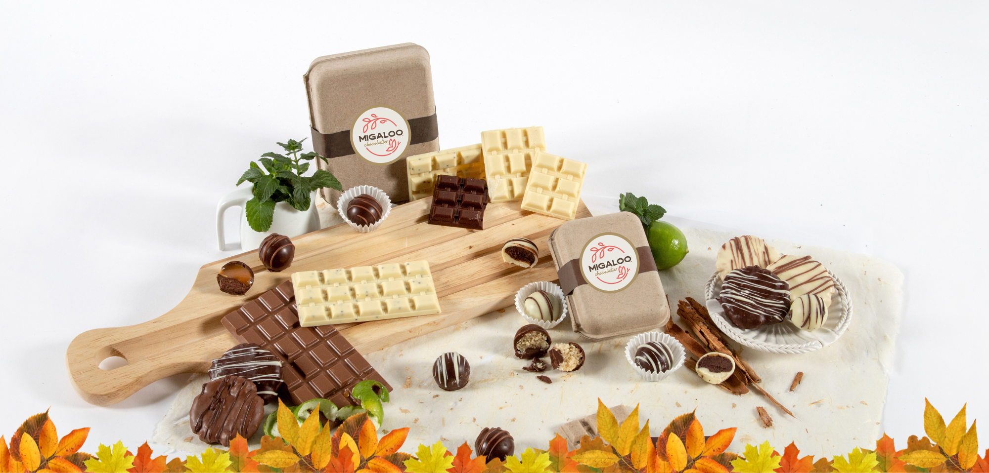 Aromatic bouquet of pure cacao taste with Migaloo Truffles, Marbles, Spreads and much more!